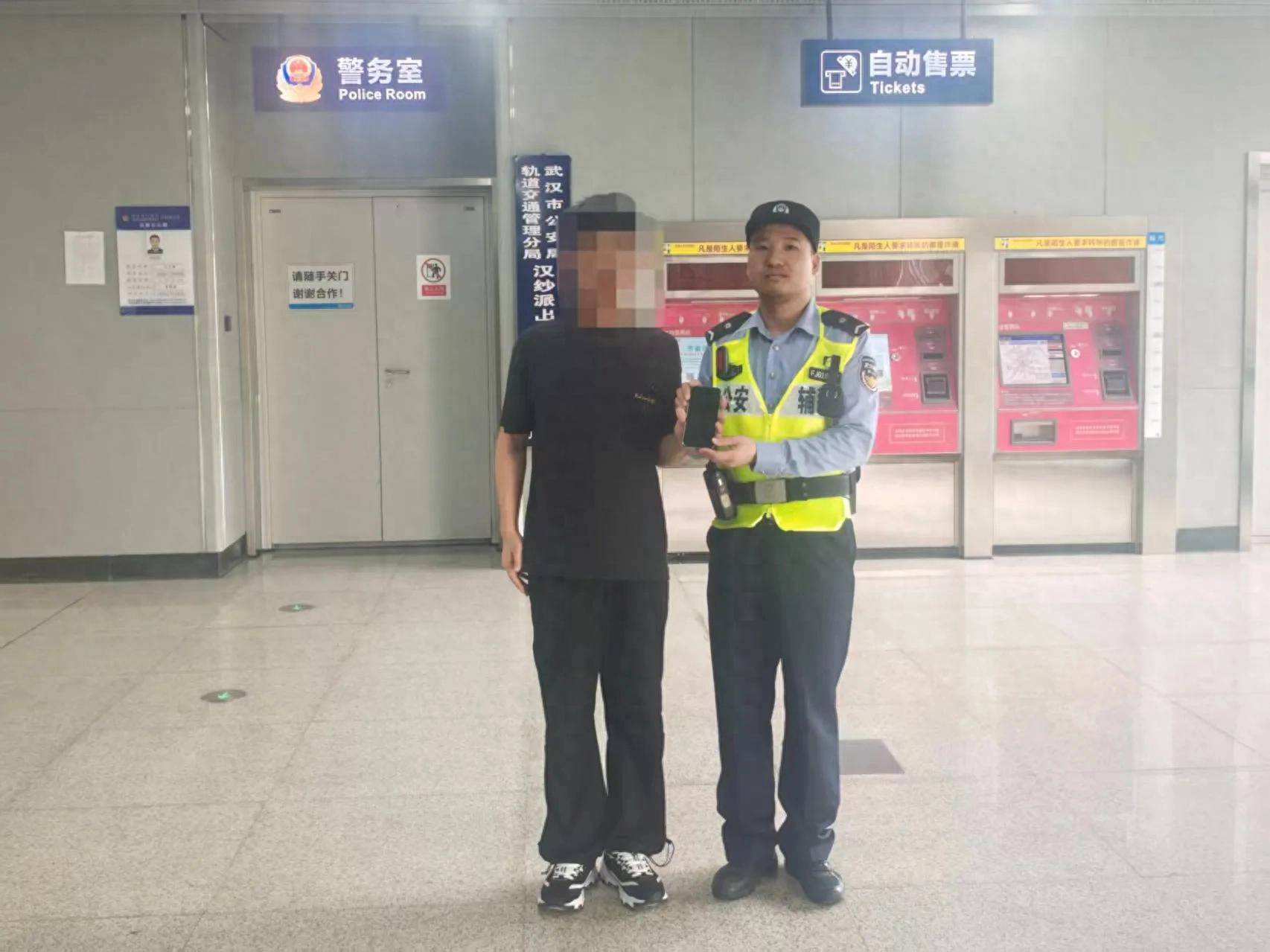 当天12时45分许,武汉市公安局轨道交通管理分局辅警陈杰在地铁16号线沌口站执勤时接到乘客梁先生求助,称其乘坐网约车来到地铁站乘坐地铁,下车时不慎将手机遗失在网约车内,手机原价5000余元,请求警察帮助寻找。